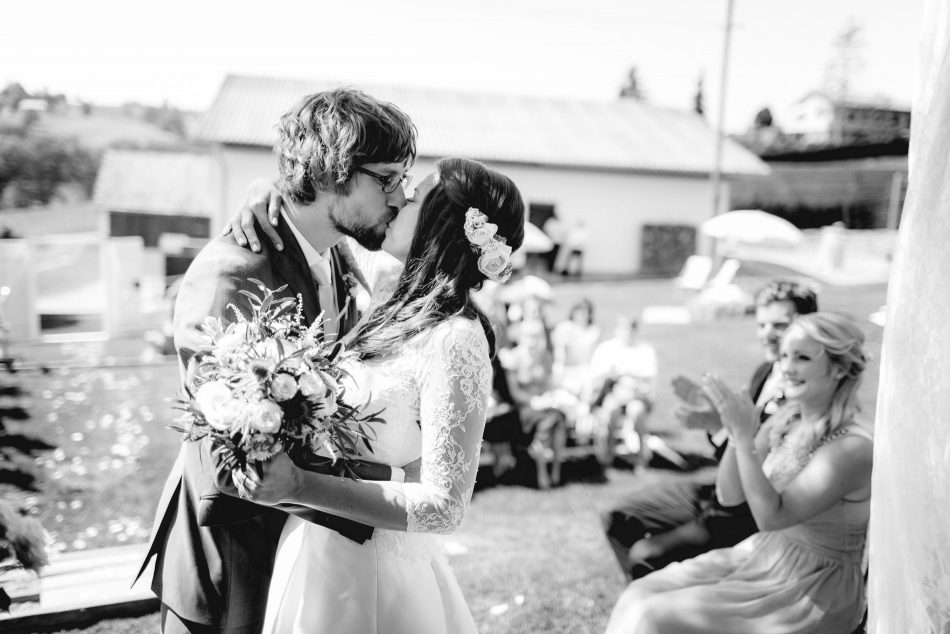 Der Weinstadl Holler bietet ein wunderbares Ambiente in den Weinbergen für eine Hochzeit im Garten und abends Party in der Scheune. Die Betreiber bieten außerdem ein Design-Appartement zum Mieten an, wo wir mit Martina und Daniel die aufregenden Stunden vor der Trauung gemeinsam mit den besten Freunden bei ganz lockerer Stimmung verbrachten. Das standesamtliche Ja-Wort gaben sich die beiden bei Traumwetter unter dem großen Baum. Das perfekte Ambiente für eine wunderschöne emotionale Zeremonie. Die Zeit nach der Trauung konnte dann bei bestem Wetter im Garten verbracht werden, wo es sich die Gäste nach dem Gratulieren auf den Sofas gemütlich machten und diesen wundervollen Hochzeitstag einfach genossen.